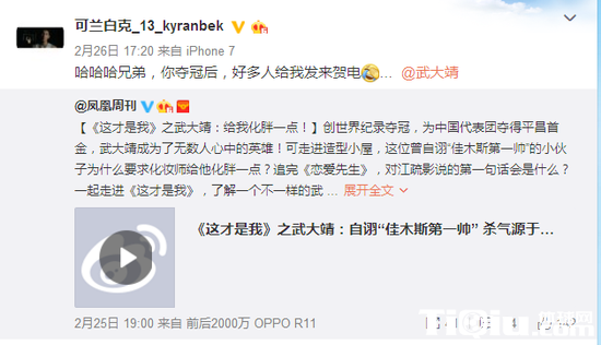 此外,在武大靖夺金时,可兰白克也曾在微博上恭喜武大靖:“恭喜兄弟啦[威武]。你用你的表现打破了外界的所有质疑,继续做你自己,为咱们再添辉煌,2018一起向前冲。”
