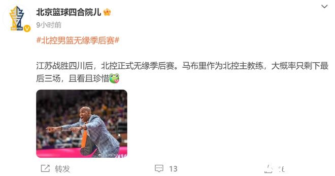 ±±¿ØÄÐÀºÒѾ»ù±¾È·¶¨ÎÞÔµ±¾Èü¼¾¼¾ºóÈüÁË£¬ÒòΪ½ËÕ¶Ó´ïµ½ÁË60»ý·Ö£¬ÕâÒâζ×ű±¿ØÄÃϺóÃæÈý³¡±ÈÈü¶¼³¬¹ý²»Á˽ËնӵĻý·Ö¡£¶øÇÒÔÚÉϸöÈü¼¾£¬±±¾©¶¼Ã»ÓдòÈë¼¾ºóÈü¡£¶ø×îеÄÏûÏ¢£¬ÓÐýÌ屬ÁÏÔÚ±¾Èü¼¾½áÊøºó£¬±±¿ØÄÐÀºÖ÷½ÌÁ·Âí²¼Àï¼´½«À뿪£¬ÕâÒâζ×ű±¿Ø±¾Èü¼¾Ê£ÏÂ3³¡±ÈÈü£¬ÊÇÂí²¼ÀïÔÚ±±¿ØÖ´½ÌµÄ×îºó3³¡¡£