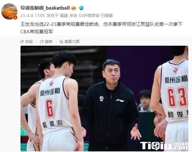 CBA 时间:2023-04-08 17:51来源:编辑:神谷玲珑今天CBA在常规赛结束,季后赛还未开始的时间,对球队进行票选,并且官宣了各个奖项。除了MVP,还有最佳外援,还有最佳主帅。对于最佳主帅这个奖项来说,毫无意外的,王世龙得了最高分。这个投票结果也没什么悬念,因为浙江高居联盟第一,而且王世龙的执教能力有目共睹。