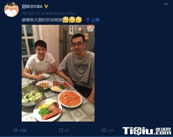 值得一提的是,正在和中国男篮备战奥运的丁彦雨航在这条微博下面回复到:“混吃混喝。”刘晓宇则立刻回复到:“别得瑟,斯杯的得分王。”