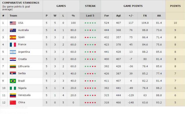 里约男篮综合成绩倒数第一 最终排在第12位