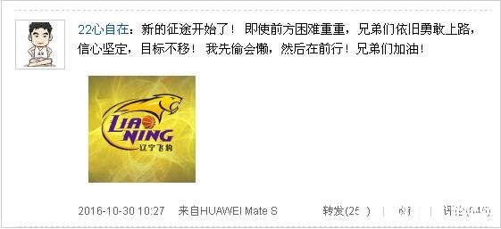 CBA 时间:2016-11-01 10:55来源:网络编辑:MR.朱李晓旭受伤发微博为队友加油 称我先偷会懒