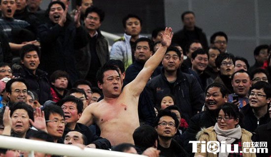 CBA 时间:2013-11-28 11:29来源:http://cba.tiqiu.com编辑:天天2010年12月26日,黄金男篮主场对阵广东宏远比赛中,一山东男性球迷现场脱衣,将帽子和衣服扔向执勤民警,赤裸上身现场为比赛加油助威,遭两名警察驱逐比赛现场。果然是硬汉子啊!