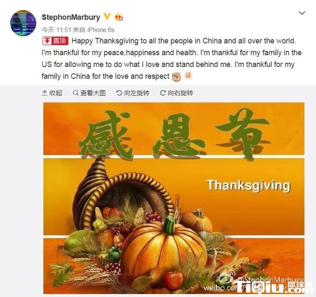 CBA 时间:2016-11-25 11:03来源:网络编辑:MR.朱马布里感恩节送上祝福 感谢中国球迷的爱与尊重